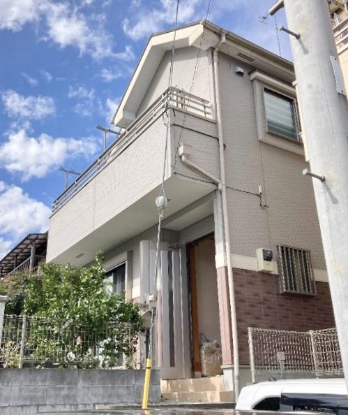 築10年とのことですが、落ち着いた雰囲気のステキなお家です。薄茶色のサイディングと赤っぽいレンガ調外壁の取り合わせがやさしげで、お庭に繁るグリーンも色を添えています。