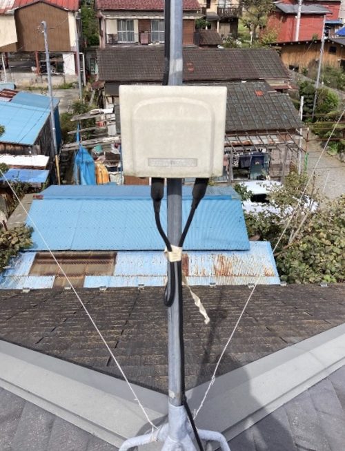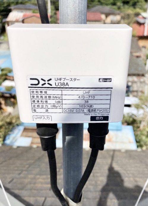 八木アンテナが設置されているマストの下部にブースターが取り付けられていましたが、それを新しい製品に交換いたしました。