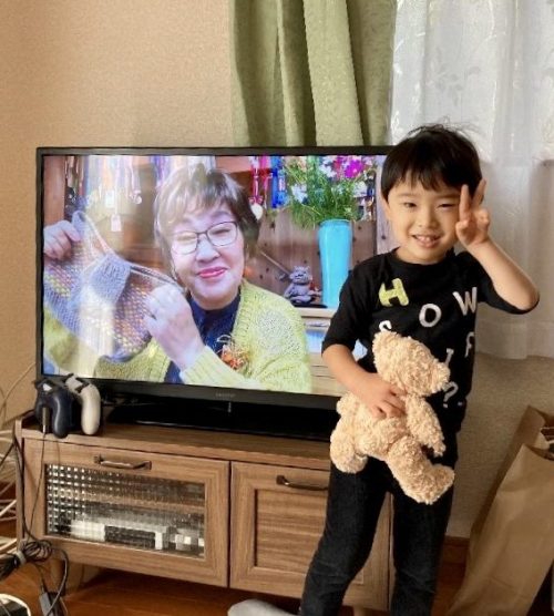 工事後にお客さま写真の撮影をお願いしましたところ、ご主人さまが「息子だけでいいですか」とお尋ねになりましたので、「もちろん大丈夫ですよ」とお答えいたしました。とってもかわいいお坊ちゃんで、ぬいぐるみを手にピースサインをしてくださいました。キュートですね〜。