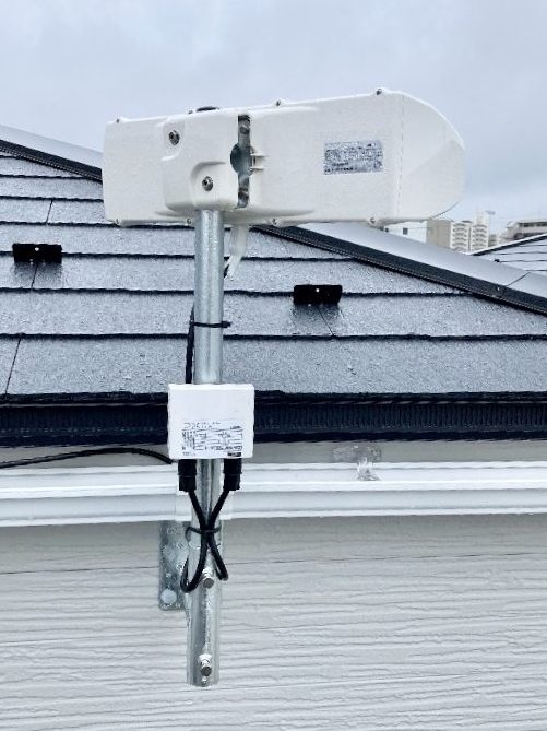 このとき、アンテナは横型デザインアンテナ設置することをお勧めしました。横型デザインアンテナは風災害に対して最も威力を発揮するアンテナで、耐風速50メートル/秒を誇ります。形状的に風の抵抗を受けにくく、倒壊のリスクが少ないのです。
