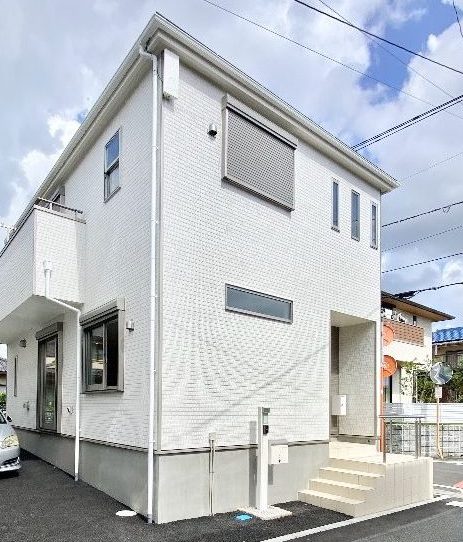 白いサイディング外壁の明るく清潔感に満ちたお宅です。スクエアな形状でシンプルさが粋です。