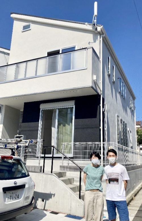 最後にお客さま写真の撮影をお願いしましたところ、快くオーケーしてくださいました。お家にぴったりの爽やかな美男美女の若いご夫妻です。説明をきちんと聞いてくださり、やさしく対応してくださいました。大変お世話になりありがとうございます。