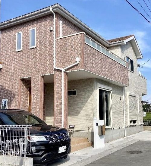 アイボリーと赤茶色のレンガ調サイディングの取り合わせが美しいお宅です。