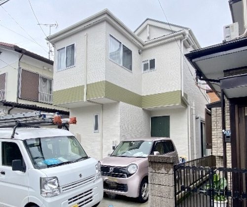 アイボリーの地に淡いオリーブグリーンが配された、美しくてお洒落なお宅です。