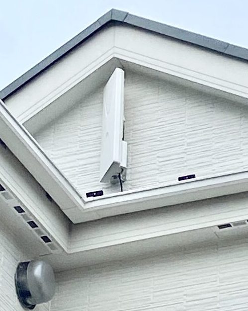 切妻屋根の合掌部分の壁面にデザインアンテナ設置を行いました。