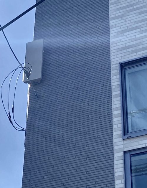 引き込み線近くの壁面に取り付ければ、配線も50センチメートルくらいの最短の長さですみます。その旨ご説明させていただいたところ、「見栄えの良い方でお願いします」とのことで壁面への設置のご了承をいただきました。