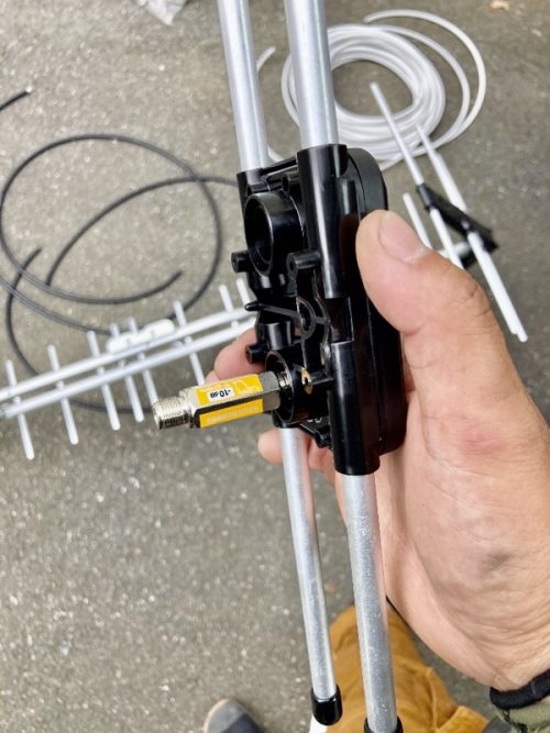 かなり電波が良く、強いところでは90デシベル取れていたのですが、BSアンテナの都合があり、ブースターを付けないわけにいかなかったので、アッテネータをつけて減衰させました。