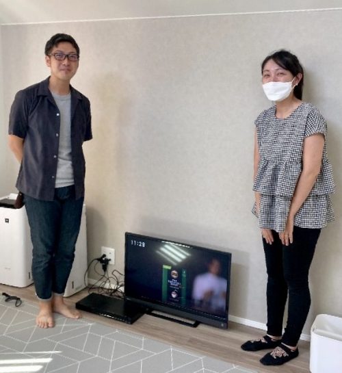 お客さま写真。シンプルモダンなお家にぴったりのステキなご夫妻です。