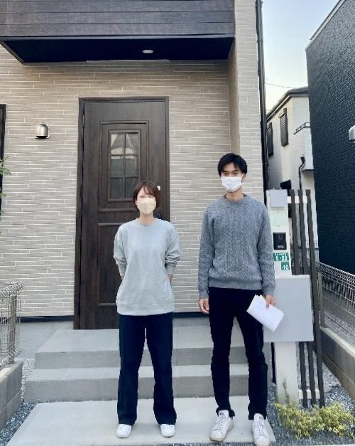 工事後にお客さま写真の撮影をお願いしましたところ、快くOKしてくださいました。ご主人さまも奥さまもスラッとしていて背が高く、カッコいいお方です。スマートな美男美女でお似合いですね