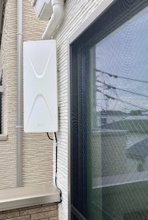 ベランダ壁面にデザインアンテナ設置工事を行いました。