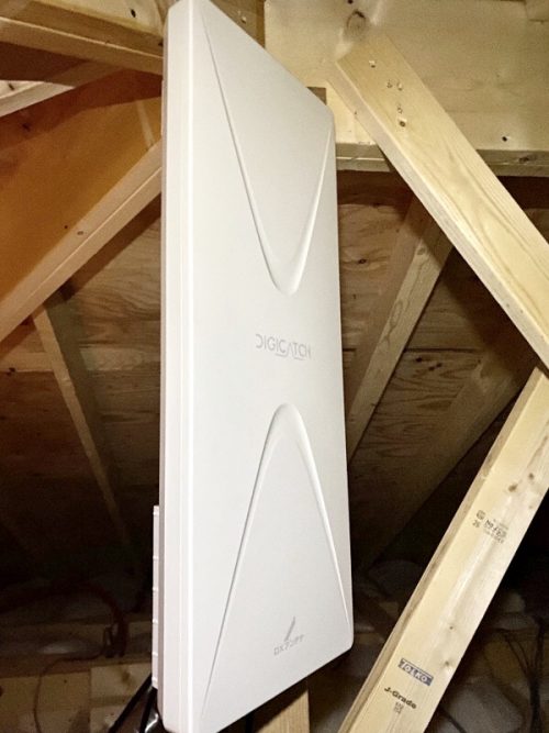 それであるならば、「屋内にデザインアンテナ設置はいかがでしょう」とご提案させていただきました。見栄えと倒壊の可能性と、二つながら問題が解決できます。