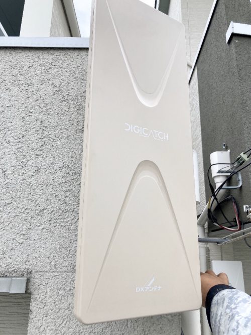 お客さまは先日、こちらのお家に引っ越していらっしゃいました。アンテナでテレビを視聴なさりたいとのことでして、ご要望はデザインアンテナ設置です。