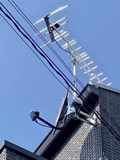 BSアンテナは外壁に合わせて黒を選ばれました。カッコいいお家がさらにカッコ良くなっています。銀色の八木アンテナも近未来的でカッコいいです。