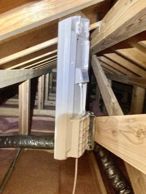 お客さまのご要望はデザインアンテナ設置で、さらに屋内設置をご希望です。住友林業さんのお宅には屋根裏に引き込み線があり、電源等もありますので電波さえ取れれば設置はOKです。
