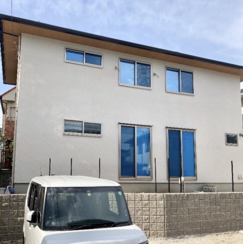 温かみのあるアイボリーの外壁に窓がたくさん並んでいます。採光に優れた明るさの溢れるステキなお家です。