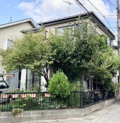 築24年とのことですが、角地にゆったりと建てられたきれいなお宅です。お庭にはさまざまな種類の樹木が植えられていて、緑がふんだんに溢れ心和みます。