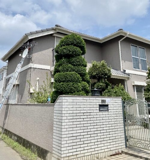 築32年とのことですが、とてもきれいで豪華なお宅です。丹念に手入れされた植木や、みごとな曲線のアイアンの門扉などが美しく、目を引きます。