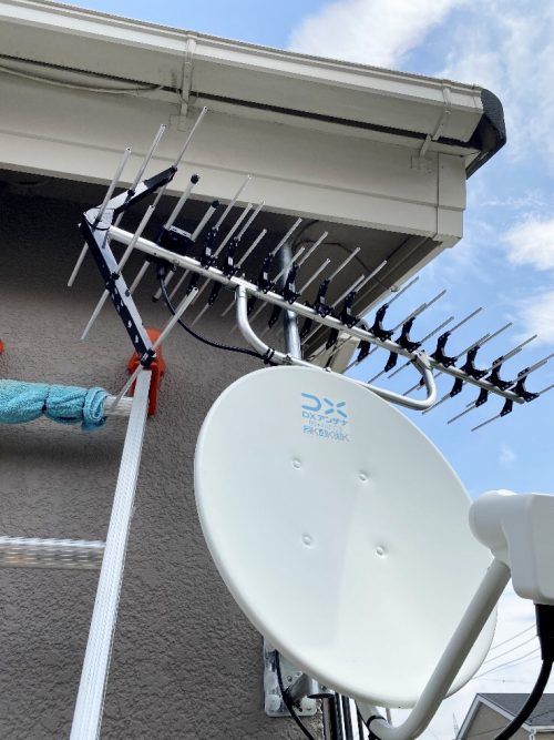 「壁面に設置でもいいので、ぜひアンテナをつけたいです」とのことでしたので、最も電波取得に優れた高性能パラスタックアンテナ設置なら可能ですとお話しさせていただき、ご納得いただきましたので工事に取りかかりました。