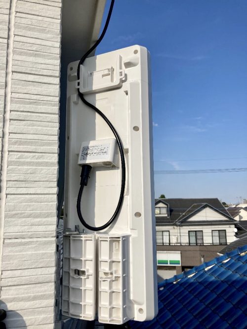 お家の裏側の三階壁面にデザインアンテナ設置を行いました。