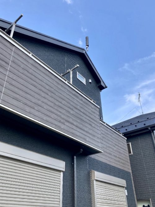 お家の裏側に回って計測したところ、こちらの方が電波状態が良かったので、裏側にアンテナ取付けをすることにいたしました。