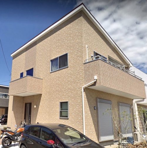 ベージュの石造り風サイディング外壁の穏やかな優しさに満ちたお宅です。お庭も広く植栽もステキです。