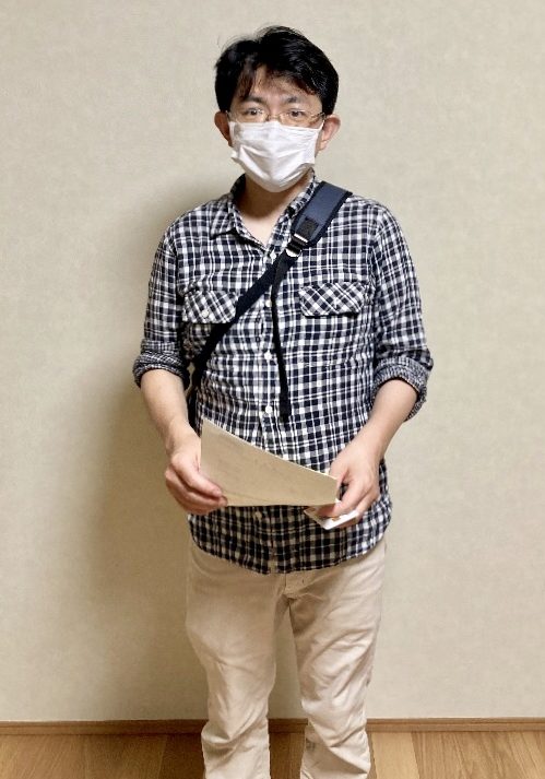 お客さま写真をお願いしましたところ、快く応じていただけました。とてもきちんとなさっていて、真面目そうなお客さまです。パラスタックアンテナ設置になり工事内容が変わってしまいましたが、ご納得していただけました。