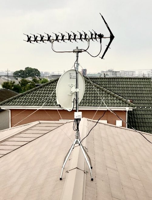 屋根上に高性能パラスタックアンテナ設置とBSアンテナ取付を行いました。