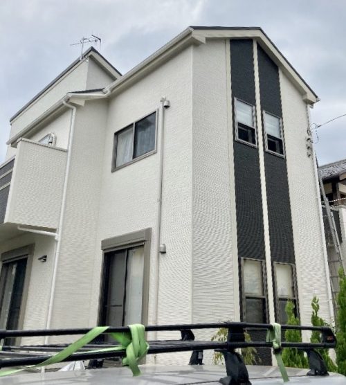 キレイなオフホワイトをベースにブラックが配されたお洒落なお家です。