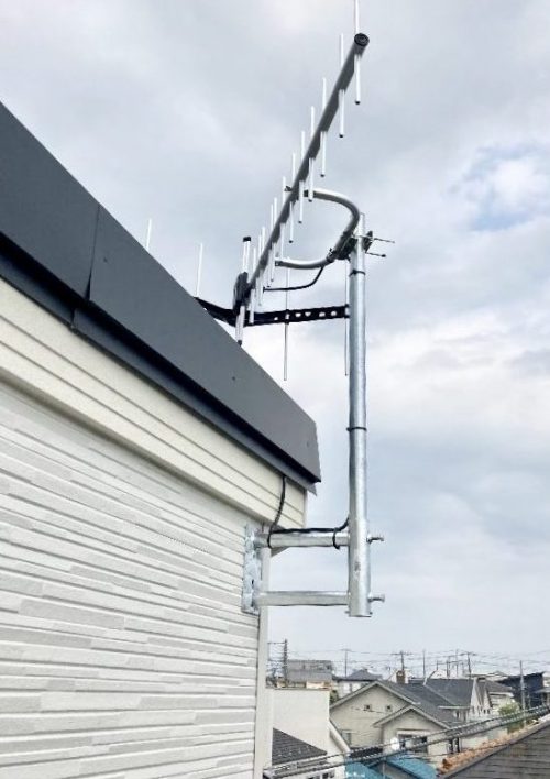 サイドベースを用いて壁面にローチャンネル八木アンテナ設置を行いました。