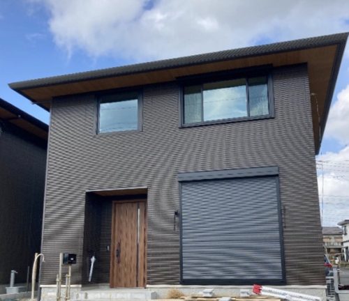 高級感溢れる黒塗りのカッコいいお家です。軒天を広く取りながらも無駄な装飾を省いたシンプルな外観で、重厚感があります。