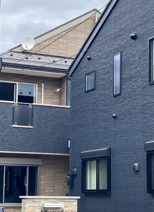 現場に着いて気がついたのですが、お隣のお宅も私が一年前に施工させていただいた物件でした。そのとき、周囲にまだお家は建っていなかったのですが、八木アンテナかデザインアンテナのどちらを選ぶかというお話になりましたので、「いま更地になっているところに、おそらく将来お家が建つと思います。壁面にデザインアンテナをつけてしまうと電波が取れなくなる可能性が高いので、八木アンテナ設置にしておいた方が無難だと思います」とお話しさせていただきました。