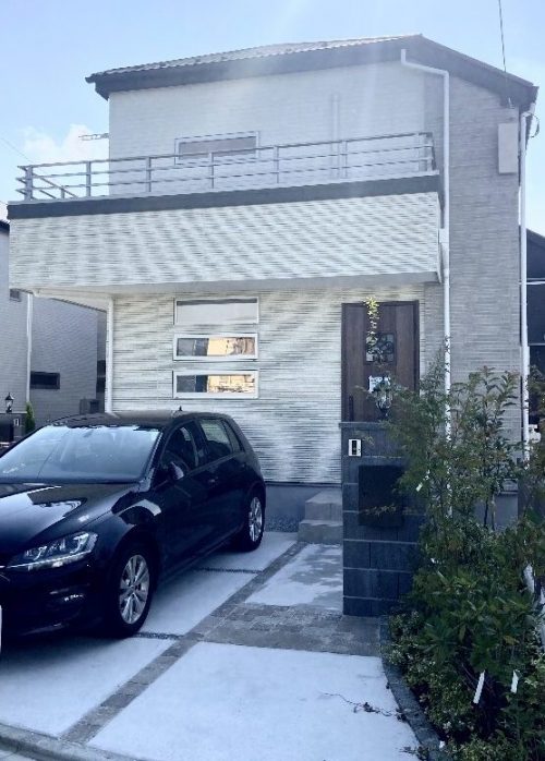 明るく高級感の漂うモダンなお宅です。玄関前の植栽や、乱石の並べられたアプローチも品が良くてステキです。