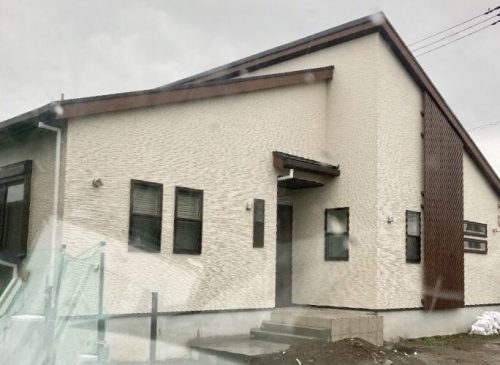 アイボリーをベースにこげ茶が配された落ち着きのあるお宅です。広々とした敷地にゆったりと建てられた平屋のお家で、余裕を感じます。