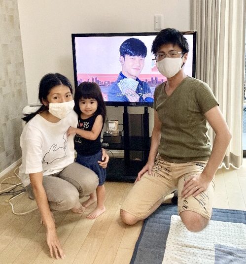 工事後にお客さま写真の撮影をお願いしましたところ、みなさま快くオーケーしてくださいました。イケメンの旦那さまと美人の奥さま、そしてめちゃめちゃキュートなお嬢ちゃんです。気さくで大変仲の良い、ステキなご家族でした。