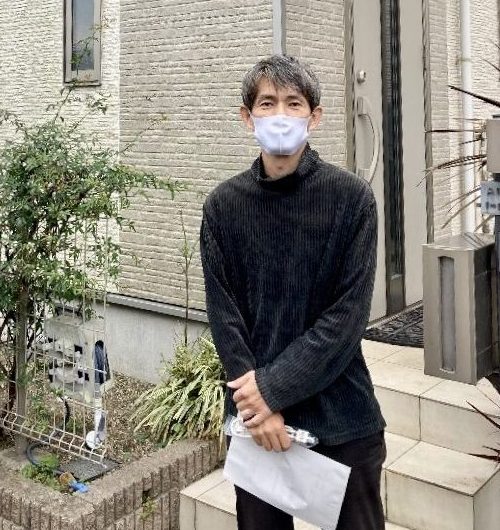 工事後にお客さま写真の撮影をお願いしましたところ、快くOKしてくださいました。お客さまは爽やかで知的、ダンディーな雰囲気のステキなお方です。