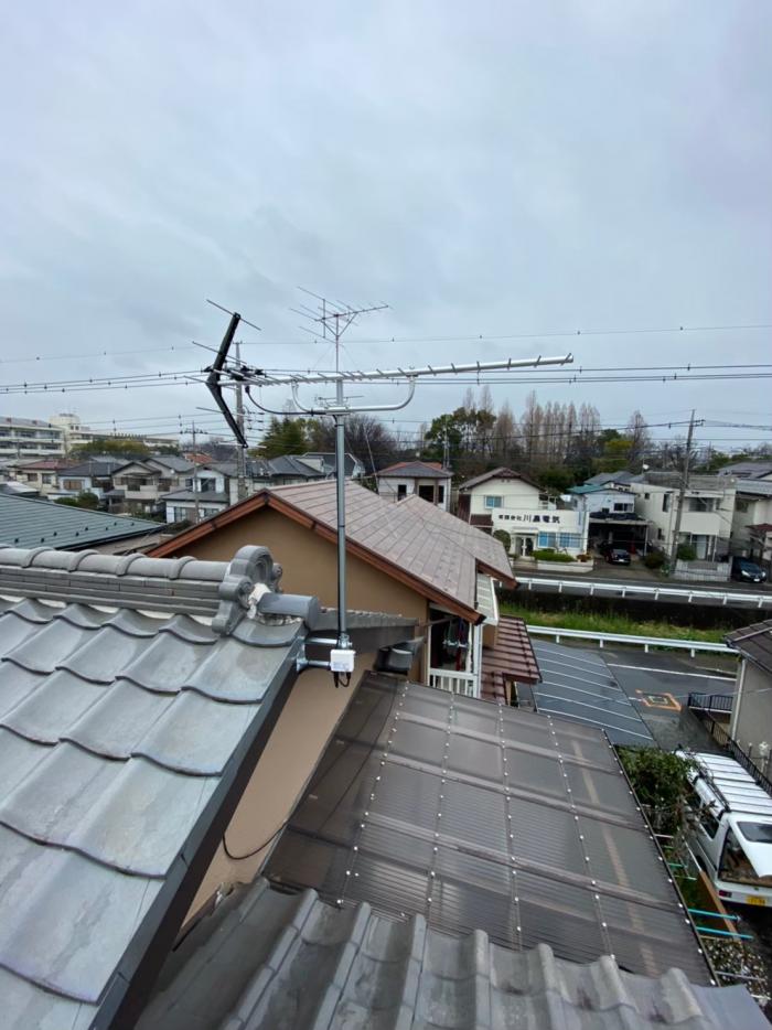 その昔、八木秀次博士が発明した形状(魚の骨のような形状)からマイナーチェンジを繰り返し洗練されたフォルムとなり、中・弱電界エリアにも対応可能な安心のDXアンテナ社製。UHF20素子アンテナの性能で、吹きさらしで障害物の少ない屋根上に設置することが多いため利得が高くなっております。万が一、壁面や屋内でデザインアンテナを取り付けられない物件 にも最適。従来の鉄製の太いワイヤーとは異なり、ステンレス製の丈夫で錆びにくいワイヤー(支線)を採用。アンテナマストから屋根の四隅に向けて4本の支線を張り巡らせ、さらに張り巡らせた支線の途中からも屋根馬に向けて4本の支線をバランスよく張り、合計8本の支線で頑丈に設置しております。サイズは51.8cm×34cm×101.4cmとなっており、VHF(アナログアンテナ)と比較して、大幅なサイズダウンと軽量化がなされています。しかも耐風速(破壊風速)50m/s。地デジ放送が始まる前の時代より、屋根上に設置するアンテナは災害に強くなっていると言えるでしょう。当店で人気ナンバー2の地デジアンテナでございます。