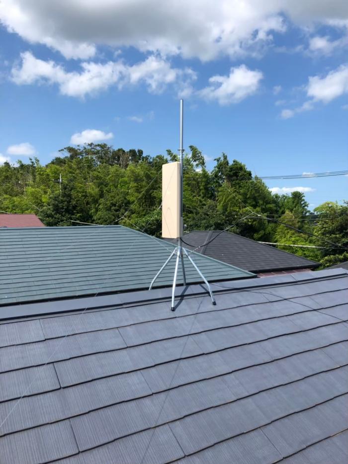 その昔、八木秀次博士が発明した形状(魚の骨のような形状)からマイナーチェンジを繰り返し洗練されたフォルムとなり、中・弱電界エリアにも対応可能な安心のDXアンテナ社製。UHF20素子アンテナの性能で、吹きさらしで障害物の少ない屋根上に設置することが多いため利得が高くなっております。万が一、壁面や屋内でデザインアンテナを取り付けられない物件 にも最適。従来の鉄製の太いワイヤーとは異なり、ステンレス製の丈夫で錆びにくいワイヤー(支線)を採用。アンテナマストから屋根の四隅に向けて4本の支線を張り巡らせ、さらに張り巡らせた支線の途中からも屋根馬に向けて4本の支線をバランスよく張り、合計8本の支線で頑丈に設置しております。サイズは51.8cm×34cm×101.4cmとなっており、VHF(アナログアンテナ)と比較して、大幅なサイズダウンと軽量化がなされています。しかも耐風速(破壊風速)50m/s。地デジ放送が始まる前の時代より、屋根上に設置するアンテナは災害に強くなっていると言えるでしょう。当店で人気ナンバー2の地デジアンテナでございます。