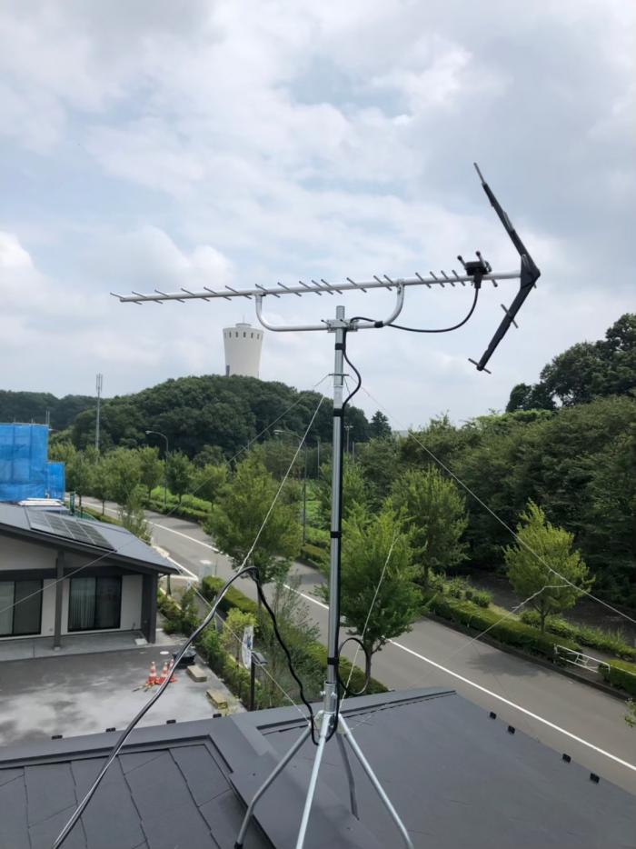 その昔、八木秀次博士が発明した形状(魚の骨のような形状)からマイナーチェンジを繰り返し洗練されたフォルムとなり、中・弱電界エリアにも対応可能な安心のDXアンテナ社製。UHF20素子アンテナの性能で、吹きさらしで障害物の少ない屋根上に設置することが多いため利得が高くなっております。万が一、壁面や屋内でデザインアンテナを取り付けられない物件 にも最適。従来の鉄製の太いワイヤーとは異なり、ステンレス製の丈夫で錆びにくいワイヤー(支線)を採用。アンテナマストから屋根の四隅に向けて4本の支線を張り巡らせ、さらに張り巡らせた支線の途中からも屋根馬に向けて4本の支線をバランスよく張り、合計8本の支線で頑丈に設置しております。サイズは51.8cm×34cm×101.4cmとなっており、VHF(アナログアンテナ)と比較して、大幅なサイズダウンと軽量化がなされています。しかも耐風速(破壊風速)50m/s。地デジ放送が始まる前の時代より、屋根上に設置するアンテナは災害に強くなっていると言えるでしょう。当店で人気ナンバー2の地デジアンテナでございます。