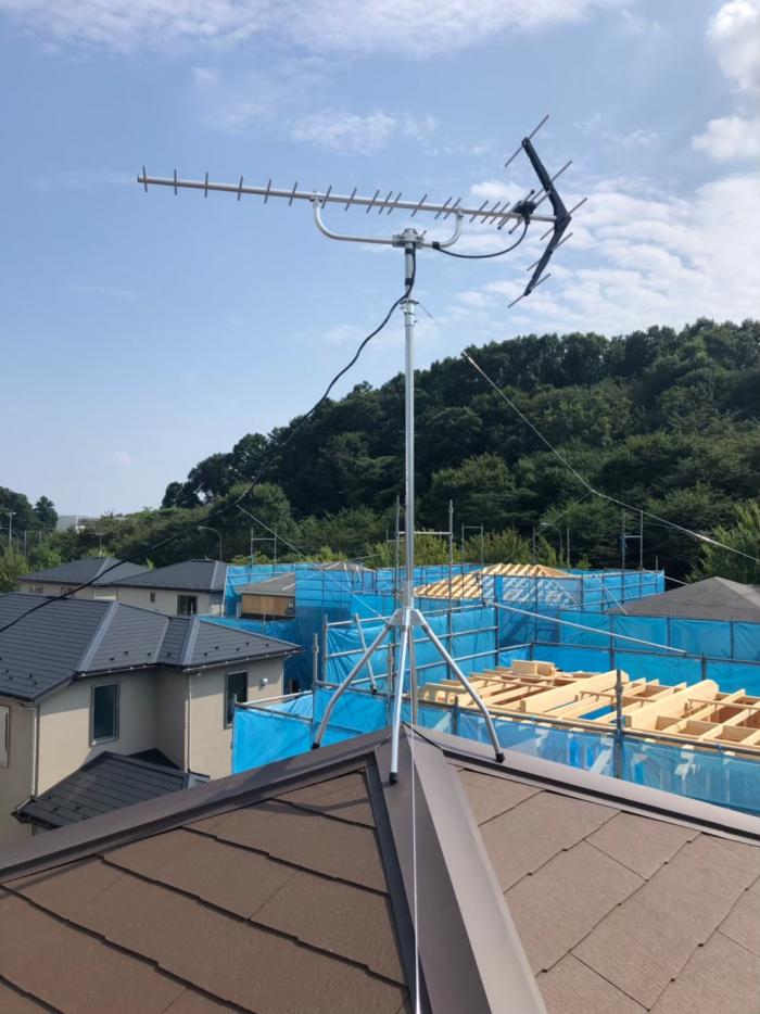 その昔、八木秀次博士が発明した形状(魚の骨のような形状)からマイナーチェンジを繰り返し洗練されたフォルムとなり、中・弱電界エリアにも対応可能な安心のDXアンテナ社製。UHF20素子アンテナの性能で、吹きさらしで障害物の少ない屋根上に設置することが多いため利得が高くなっております。万が一、壁面や屋内でデザインアンテナを取り付けられない物件 にも最適。従来の鉄製の太いワイヤーとは異なり、ステンレス製の丈夫で錆びにくいワイヤー(支線)を採用。アンテナマストから屋根の四隅に向けて4本の支線を張り巡らせ、さらに張り巡らせた支線の途中からも屋根馬に向けて4本の支線をバランスよく張り、合計8本の支線で頑丈に設置しております。サイズは51.8cm×34cm×101.4cmとなっており、VHF(アナログアンテナ)と比較して、大幅なサイズダウンと軽量化がなされています。しかも耐風速(破壊風速)50m/s。地デジ放送が始まる前の時代より、屋根上に設置するアンテナは災害に強くなっていると言えるでしょう。当店で人気ナンバー2の地デジアンテナでございます。