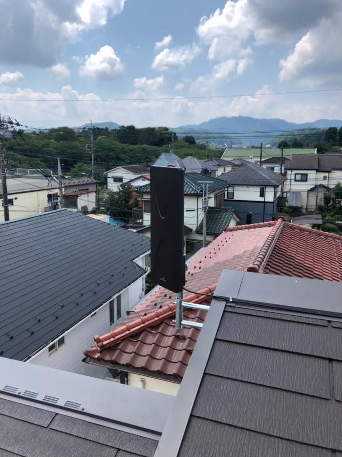 その昔、八木秀次博士が発明した形状(魚の骨のような形状)からマイナーチェンジを繰り返し洗練されたフォルムとなり、中・弱電界エリアにも対応可能な安心のDXアンテナ社製。UHF20素子アンテナの性能で、吹きさらしで障害物の少ない屋根上に設置することが多いため利得が高くなっております。万が一、壁面や屋内でデザインアンテナを取り付けられない物件 にも最適。従来の鉄製の太いワイヤーとは異なり、ステンレス製の丈夫で錆びにくいワイヤー(支線)を採用。アンテナマストから屋根の四隅に向けて4本の支線を張り巡らせ、さらに張り巡らせた支線の途中からも屋根馬に向けて4本の支線をバランスよく張り、合計8本の支線で頑丈に設置しております。サイズは51.8cm×34cm×101.4cmとなっており、VHF(アナログアンテナ)と比較して、大幅なサイズダウンと軽量化がなされています。しかも耐風速(破壊風速)50m/s。地デジ放送が始まる前の時代より、屋根上に設置するアンテナは災害に強くなっていると言えるでしょう。当店で人気ナンバー2の地デジアンテナでございます。