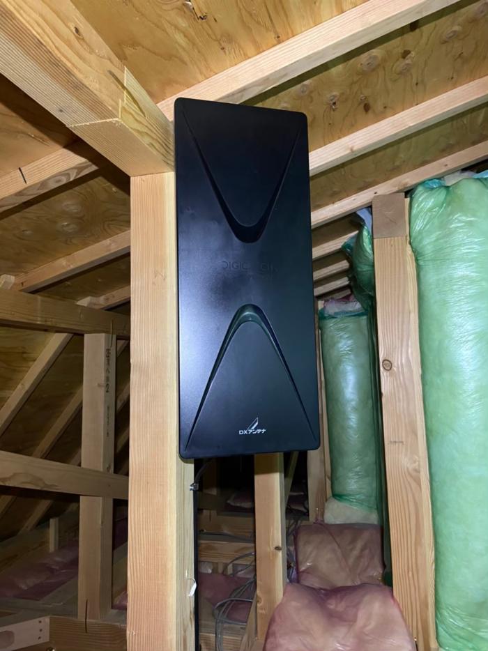 カラーバリエーションはオフホワイトライトブラウンスーパーブラックブラックブラウンの4色から現場で選択することが可能です。同じUHF20素子相当のデザインアンテナを比較した場合、業界トップクラスの受信性能、高利得を誇る大手DXアンテナ社製。本体の厚みはわずか119mm、サイズは高さ590mm×幅220mmで業界最小クラス。コンパクトサイズのため狭い屋根裏や天井裏などへの取り付けも最適。壁面に取り付けの場合は、極細のビスを6箇所打ち込んで金具を取り付け、金具にガチャンと本体をはめ込みボルトを締めるだけの簡単施工が可能なため建物へのダメージを極力軽減できます。ブースターが必要な場合はUAH201の背面にスッキリ取り付けられる構造になっており、表にブースターが露出しないので外観もキレイに保てます(弊社では電波状況が悪くない限り、なるべくブースターも屋内の、分配器の近くに隠してしております)。修理の場合、ブースター内蔵タイプのデザインアンテナとは異なり、ブースターだけの交換をできるメリットがあります。太陽光発電システムや片流れ屋根で屋根上に屋根馬を立てられず昔ながらの八木アンテナを設置できない住宅にも最適。耐風速(破戒風速)50m/sですが、屋内や外壁など、強風の影響を受けにくい取り付け位置と形状をしているため、災害にも強いアンテナとなっております。当店人気ナンバー1の地デジアンテナでございます。