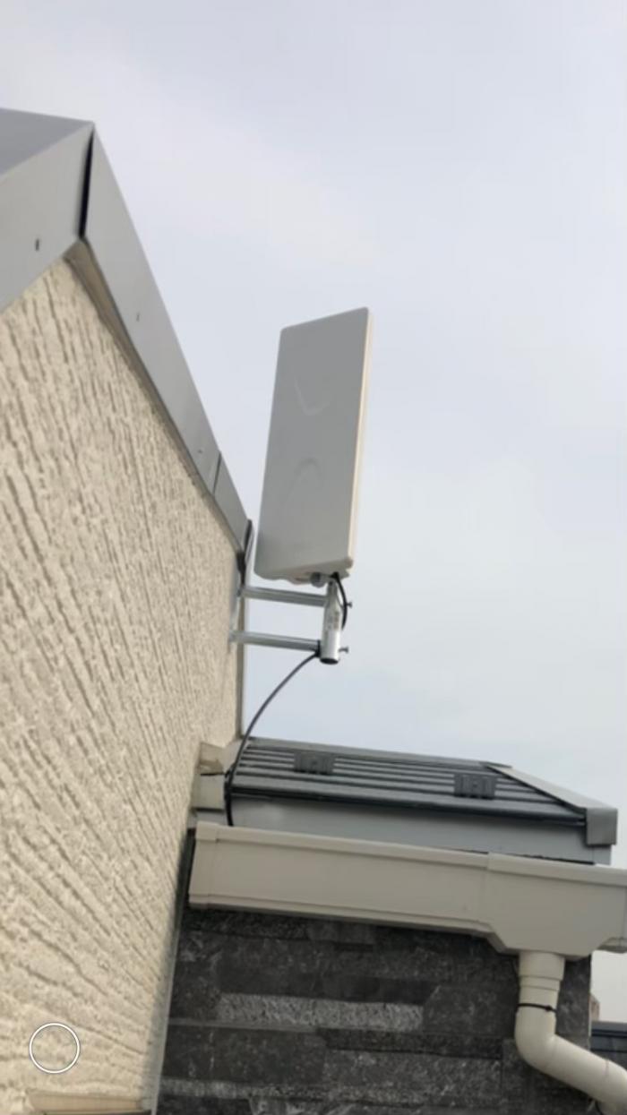 その昔、八木秀次博士が発明した形状(魚の骨のような形状)からマイナーチェンジを繰り返し洗練されたフォルムとなり、中・弱電界エリアにも対応可能な安心のDXアンテナ社製。UHF20素子アンテナの性能で、吹きさらしで障害物の少ない屋根上に設置することが多いため利得が高くなっております。万が一、壁面や屋内でデザインアンテナを取り付けられない物件 にも最適。従来の鉄製の太いワイヤーとは異なり、ステンレス製の丈夫で錆びにくいワイヤー(支線)を採用。アンテナマストから屋根の四隅に向けて4本の支線を張り巡らせ、さらに張り巡らせた支線の途中からも屋根馬に向けて4本の支線をバランスよく張り、合計8本の支線で頑丈に設置しております。サイズは51.8cm×34cm×101.4cmとなっており、VHF(アナログアンテナ)と比較して、大幅なサイズダウンと軽量化がなされています。しかも耐風速(破壊風速)50m/s。地デジ放送が始まる前の時代より、屋根上に設置するアンテナは災害に強くなっていると言えるでしょう。当店で人気ナンバー2の地デジアンテナでございます。
