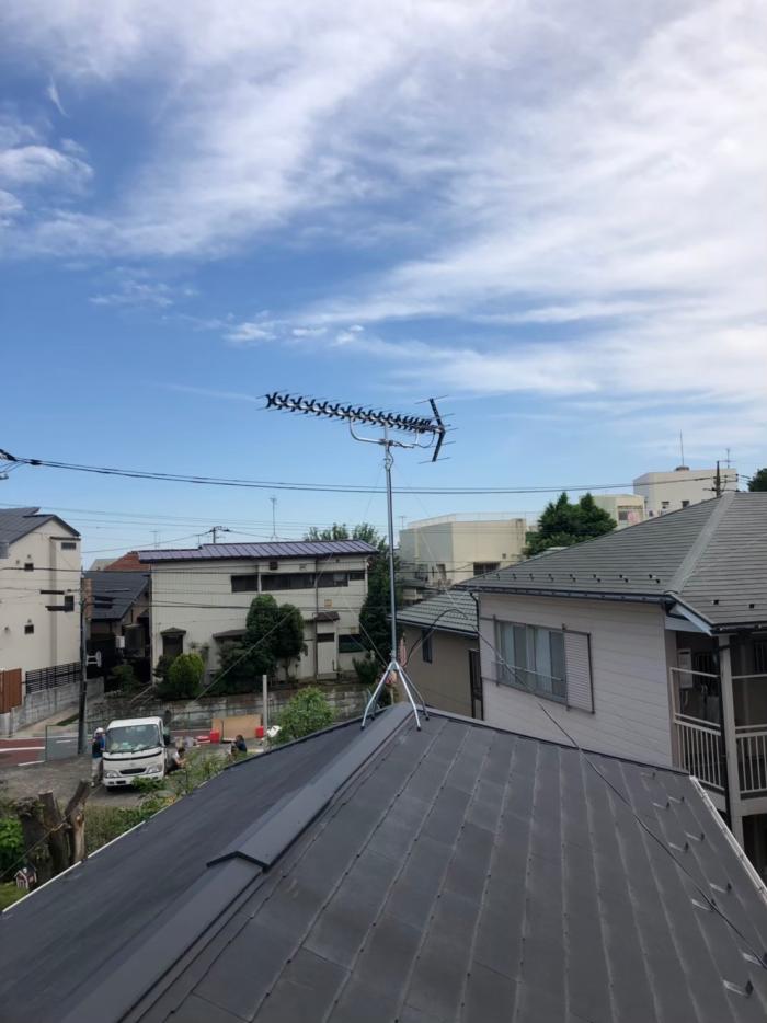 その昔、八木秀次博士が発明した形状(魚の骨のような形状)からマイナーチェンジを繰り返し洗練されたフォルムとなり、中・弱電界エリアにも対応可能な安心のDXアンテナ社製。UHF20素子アンテナの性能で、吹きさらしで障害物の少ない屋根上に設置することが多いため利得が高くなっております。万が一、壁面や屋内でデザインアンテナを取り付けられない物件 にも最適。従来の鉄製の太いワイヤーとは異なり、ステンレス製の丈夫で錆びにくいワイヤー(支線)を採用。アンテナマストから屋根の四隅に向けて4本の支線を張り巡らせ、さらに張り巡らせた支線の途中からも屋根馬に向けて4本の支線をバランスよく張り、合計8本の支線で頑丈に設置しております。サイズは51.8cm×34cm×101.4cmとなっており、VHF(アナログアンテナ)と比較して、大幅なサイズダウンと軽量化がなされています。しかも耐風速(破壊風速)50m/s。地デジ放送が始まる前の時代より、屋根上に設置するアンテナは災害に強くなっていると言えるでしょう。当店で人気ナンバー2の地デジアンテナでございます。