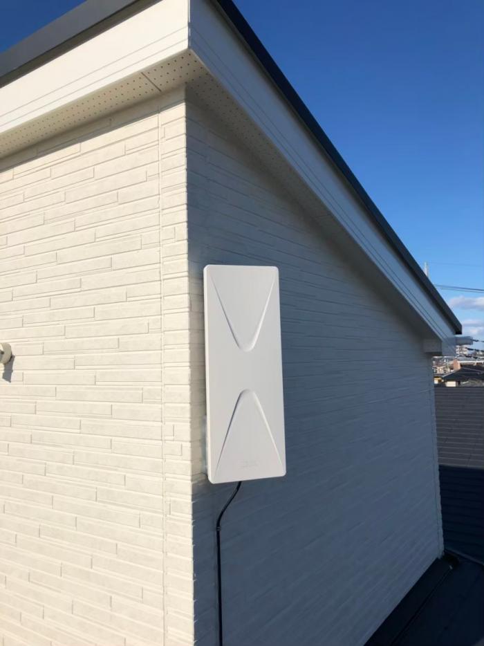 カラーバリエーションはオフホワイトライトブラウンスーパーブラックブラックブラウンの4色から現場で選択することが可能です。同じUHF20素子相当のデザインアンテナを比較した場合、業界トップクラスの受信性能、高利得を誇る大手DXアンテナ社製。本体の厚みはわずか119mm、サイズは高さ590mm×幅220mmで業界最小クラス。コンパクトサイズのため狭い屋根裏や天井裏などへの取り付けも最適。壁面に取り付けの場合は、極細のビスを6箇所打ち込んで金具を取り付け、金具にガチャンと本体をはめ込みボルトを締めるだけの簡単施工が可能なため建物へのダメージを極力軽減できます。ブースターが必要な場合はUAH201の背面にスッキリ取り付けられる構造になっており、表にブースターが露出しないので外観もキレイに保てます(弊社では電波状況が悪くない限り、なるべくブースターも屋内の、分配器の近くに隠してしております)。修理の場合、ブースター内蔵タイプのデザインアンテナとは異なり、ブースターだけの交換をできるメリットがあります。太陽光発電システムや片流れ屋根で屋根上に屋根馬を立てられず昔ながらの八木アンテナを設置できない住宅にも最適。耐風速(破戒風速)50m/sですが、屋内や外壁など、強風の影響を受けにくい取り付け位置と形状をしているため、災害にも強いアンテナとなっております。当店人気ナンバー1の地デジアンテナでございます。