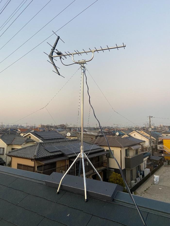 その昔、八木秀次博士が発明した形状(魚の骨のような形状)からマイナーチェンジを繰り返し洗練されたフォルムとなり、中・弱電界エリアにも対応可能な安心のDXアンテナ社製。UHF20素子アンテナの性能で、吹きさらしで障害物の少ない屋根上に設置することが多いため利得が高くなっております。万が一、壁面や屋内でデザインアンテナを取り付けられない物件 にも最適。従来の鉄製の太いワイヤーとは異なり、ステンレス製の丈夫で錆びにくいワイヤー(支線)を採用。アンテナマストから屋根の四隅に向けて4本の支線を張り巡らせ、さらに張り巡らせた支線の途中からも屋根馬に向けて4本の支線をバランスよく張り、合計8本の支線で頑丈に設置しております。サイズは51.8cm×34cm×101.4cmとなっており、VHF(アナログアンテナ)と比較して、大幅なサイズダウンと軽量化がなされています。しかも耐風速(破壊風速)50m/s。地デジ放送が始まる前の時代より、屋根上に設置するアンテナは災害に強くなっていると言えるでしょう。当店で人気ナンバー2の地デジアンテナでございます。