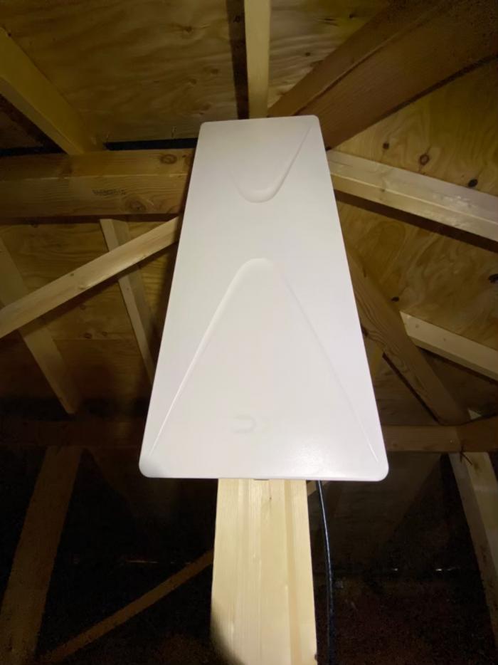 カラーバリエーションはオフホワイトライトブラウンスーパーブラックブラックブラウンの4色から現場で選択することが可能です。同じUHF20素子相当のデザインアンテナを比較した場合、業界トップクラスの受信性能、高利得を誇る大手DXアンテナ社製。本体の厚みはわずか119mm、サイズは高さ590mm×幅220mmで業界最小クラス。コンパクトサイズのため狭い屋根裏や天井裏などへの取り付けも最適。壁面に取り付けの場合は、極細のビスを6箇所打ち込んで金具を取り付け、金具にガチャンと本体をはめ込みボルトを締めるだけの簡単施工が可能なため建物へのダメージを極力軽減できます。ブースターが必要な場合はUAH201の背面にスッキリ取り付けられる構造になっており、表にブースターが露出しないので外観もキレイに保てます(弊社では電波状況が悪くない限り、なるべくブースターも屋内の、分配器の近くに隠してしております)。修理の場合、ブースター内蔵タイプのデザインアンテナとは異なり、ブースターだけの交換をできるメリットがあります。太陽光発電システムや片流れ屋根で屋根上に屋根馬を立てられず昔ながらの八木アンテナを設置できない住宅にも最適。耐風速(破戒風速)50m/sですが、屋内や外壁など、強風の影響を受けにくい取り付け位置と形状をしているため、災害にも強いアンテナとなっております。当店人気ナンバー1の地デジアンテナでございます。