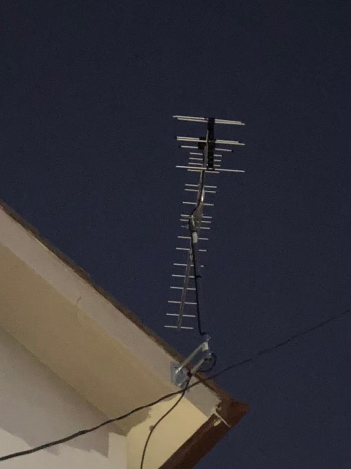 その昔、八木秀次博士が発明した形状(魚の骨のような形状)からマイナーチェンジを繰り返し洗練されたフォルムとなり、中・弱電界エリアにも対応可能な安心のDXアンテナ社製。UHF20素子アンテナの性能で、吹きさらしで障害物の少ない屋根上に設置することが多いため利得が高くなっております。万が一、壁面や屋内でデザインアンテナを取り付けられない物件 にも最適。従来の鉄製の太いワイヤーとは異なり、ステンレス製の丈夫で錆びにくいワイヤー(支線)を採用。アンテナマストから屋根の四隅に向けて4本の支線を張り巡らせ、さらに張り巡らせた支線の途中からも屋根馬に向けて4本の支線をバランスよく張り、合計8本の支線で頑丈に設置しております。サイズは51.8cm×34cm×101.4cmとなっており、VHF(アナログアンテナ)と比較して、大幅なサイズダウンと軽量化がなされています。しかも耐風速(破壊風速)50m/s。地デジ放送が始まる前の時代より、屋根上に設置するアンテナは災害に強くなっていると言えるでしょう。当店で人気ナンバー2の地デジアンテナでございます。