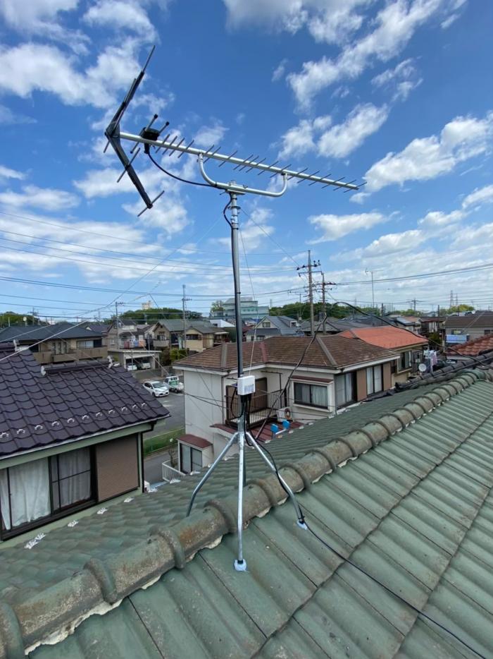 その昔、八木秀次博士が発明した形状(魚の骨のような形状)からマイナーチェンジを繰り返し洗練されたフォルムとなり、中・弱電界エリアにも対応可能な安心のDXアンテナ社製。UHF20素子アンテナの性能で、吹きさらしで障害物の少ない屋根上に設置することが多いため利得が高くなっております。万が一、壁面や屋内でデザインアンテナを取り付けられない物件 にも最適。従来の鉄製の太いワイヤーとは異なり、ステンレス製の丈夫で錆びにくいワイヤー(支線)を採用。アンテナマストから屋根の四隅に向けて4本の支線を張り巡らせ、さらに張り巡らせた支線の途中からも屋根馬に向けて4本の支線をバランスよく張り、合計8本の支線で頑丈に設置しております。サイズは51.8cm×34cm×101.4cmとなっており、VHF(アナログアンテナ)と比較して、大幅なサイズダウンと軽量化がなされています。しかも耐風速(破壊風速)50m/s。地デジ放送が始まる前の時代より、屋根上に設置するアンテナは災害に強くなっていると言えるでしょう。当店で人気ナンバー2の地デジアンテナでございます。