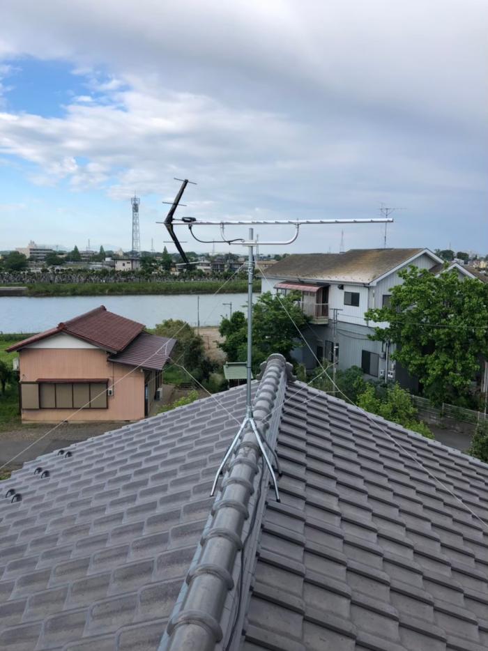 その昔、八木秀次博士が発明した形状(魚の骨のような形状)からマイナーチェンジを繰り返し洗練されたフォルムとなり、中・弱電界エリアにも対応可能な安心のDXアンテナ社製。UHF20素子アンテナの性能で、吹きさらしで障害物の少ない屋根上に設置することが多いため利得が高くなっております。万が一、壁面や屋内でデザインアンテナを取り付けられない物件 にも最適。従来の鉄製の太いワイヤーとは異なり、ステンレス製の丈夫で錆びにくいワイヤー(支線)を採用。アンテナマストから屋根の四隅に向けて4本の支線を張り巡らせ、さらに張り巡らせた支線の途中からも屋根馬に向けて4本の支線をバランスよく張り、合計8本の支線で頑丈に設置しております。サイズは51.8cm×34cm×101.4cmとなっており、VHF(アナログアンテナ)と比較して、大幅なサイズダウンと軽量化がなされています。しかも耐風速(破壊風速)50m/s。地デジ放送が始まる前の時代より、屋根上に設置するアンテナは災害に強くなっていると言えるでしょう。当店で人気ナンバー2の地デジアンテナでございます。