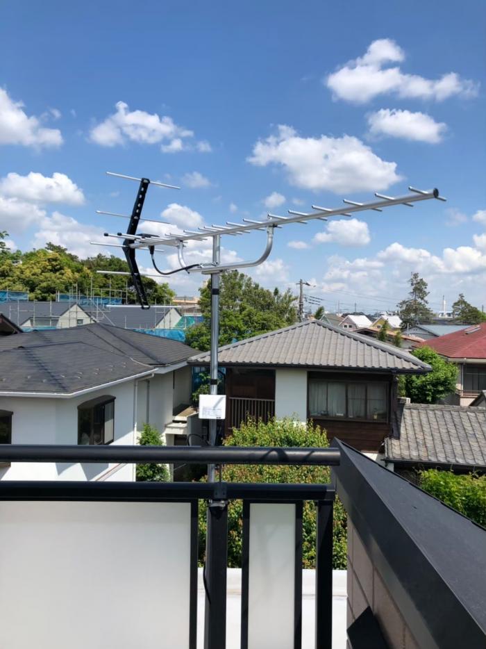 その昔、八木秀次博士が発明した形状(魚の骨のような形状)からマイナーチェンジを繰り返し洗練されたフォルムとなり、中・弱電界エリアにも対応可能な安心のDXアンテナ社製。UHF20素子アンテナの性能で、吹きさらしで障害物の少ない屋根上に設置することが多いため利得が高くなっております。万が一、壁面や屋内でデザインアンテナを取り付けられない物件 にも最適。従来の鉄製の太いワイヤーとは異なり、ステンレス製の丈夫で錆びにくいワイヤー(支線)を採用。アンテナマストから屋根の四隅に向けて4本の支線を張り巡らせ、さらに張り巡らせた支線の途中からも屋根馬に向けて4本の支線をバランスよく張り、合計8本の支線で頑丈に設置しております。サイズは51.8cm×34cm×101.4cmとなっており、VHF(アナログアンテナ)と比較して、大幅なサイズダウンと軽量化がなされています。しかも耐風速(破壊風速)50m/s。地デジ放送が始まる前の時代より、屋根上に設置するアンテナは災害に強くなっていると言えるでしょう。当店で人気ナンバー2の地デジアンテナでございます。